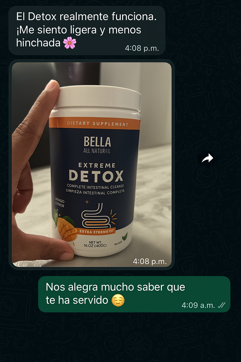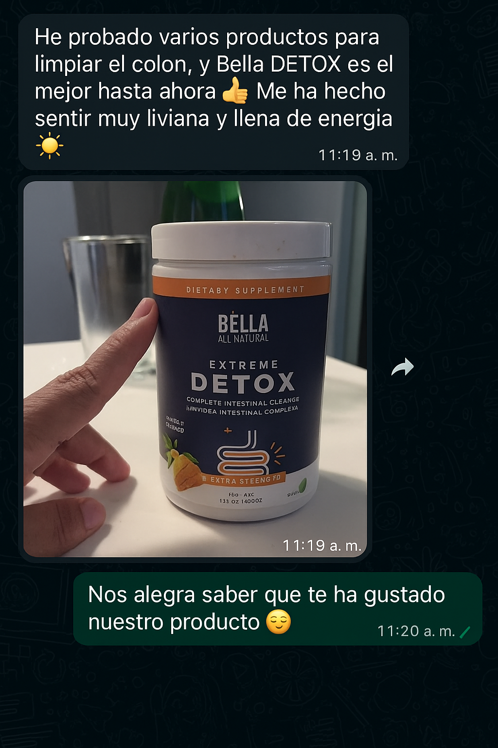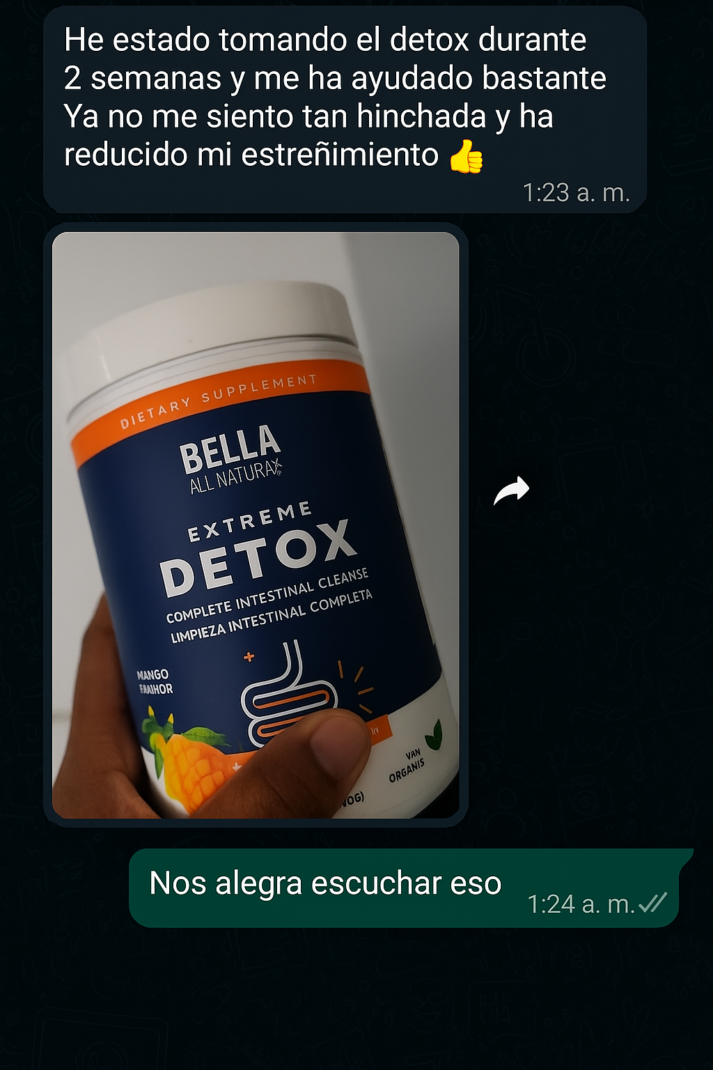 Llevo mas de un mes con el tratamiento y no saben la magia que ha hecho el detox en mí